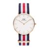 Inspired by the gorgeous colors of a classic flag, this red, white and blue NATO band celebrates timeless preppy American fashion. The playful band, when paired with the simplistic and elegantly slim dial, gives you a timepiece that can be worn to both work and after work.