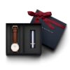 The sophisticated Classic Petite Melrose features an eggshell-white dial and an elegant rose gold mesh strap. Paired here with our alluring Classic bracelet. Your purchase will be delivered in one of our specially designed boxes with gold debossed Daniel Wellington logo.