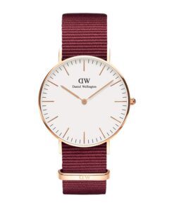 Với những đặc điểm thiết kế cổ điển như vỏ thanh mảnh, chi tiết tinh tế bằng hai màu vàng hồng và bạc, dây đeo NATO màu đỏ hồng ngọc, Classic Roselyn tự tin là chiếc đồng hồ dành cho cả ngày lẫn đêm.