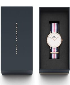 Ultra-thin casing, eggshell white dial and perfectly round design. When you add a pink, white and blue NATO band, you get a watch that is fun, minimalistic, classy and elegant – all at the same time.